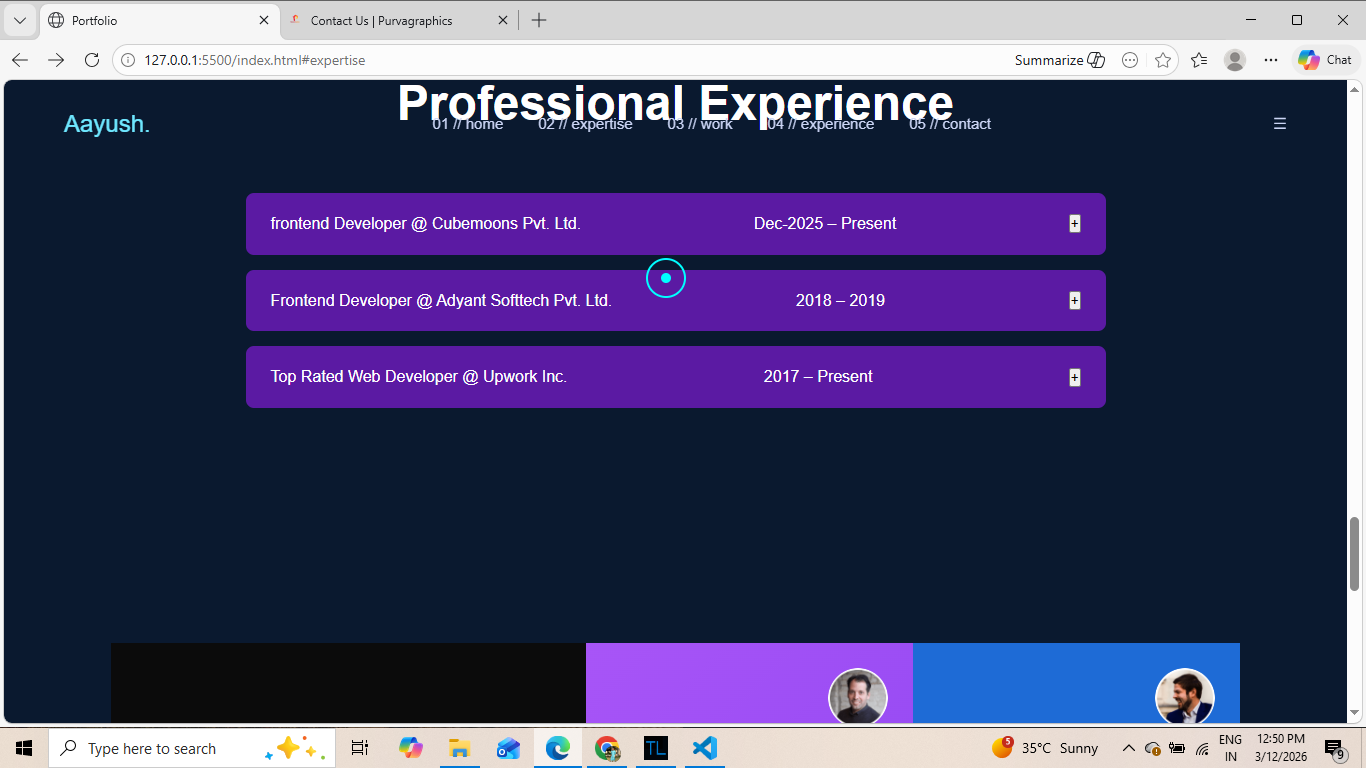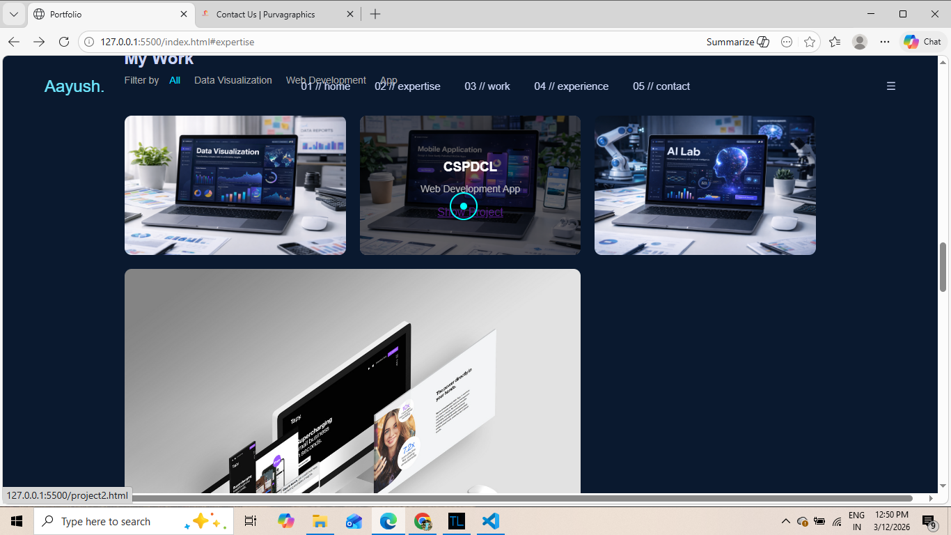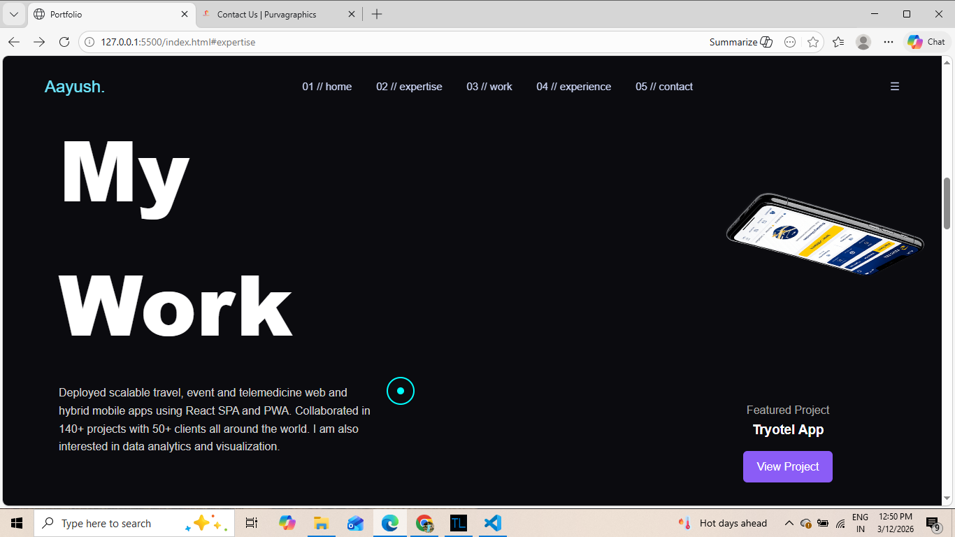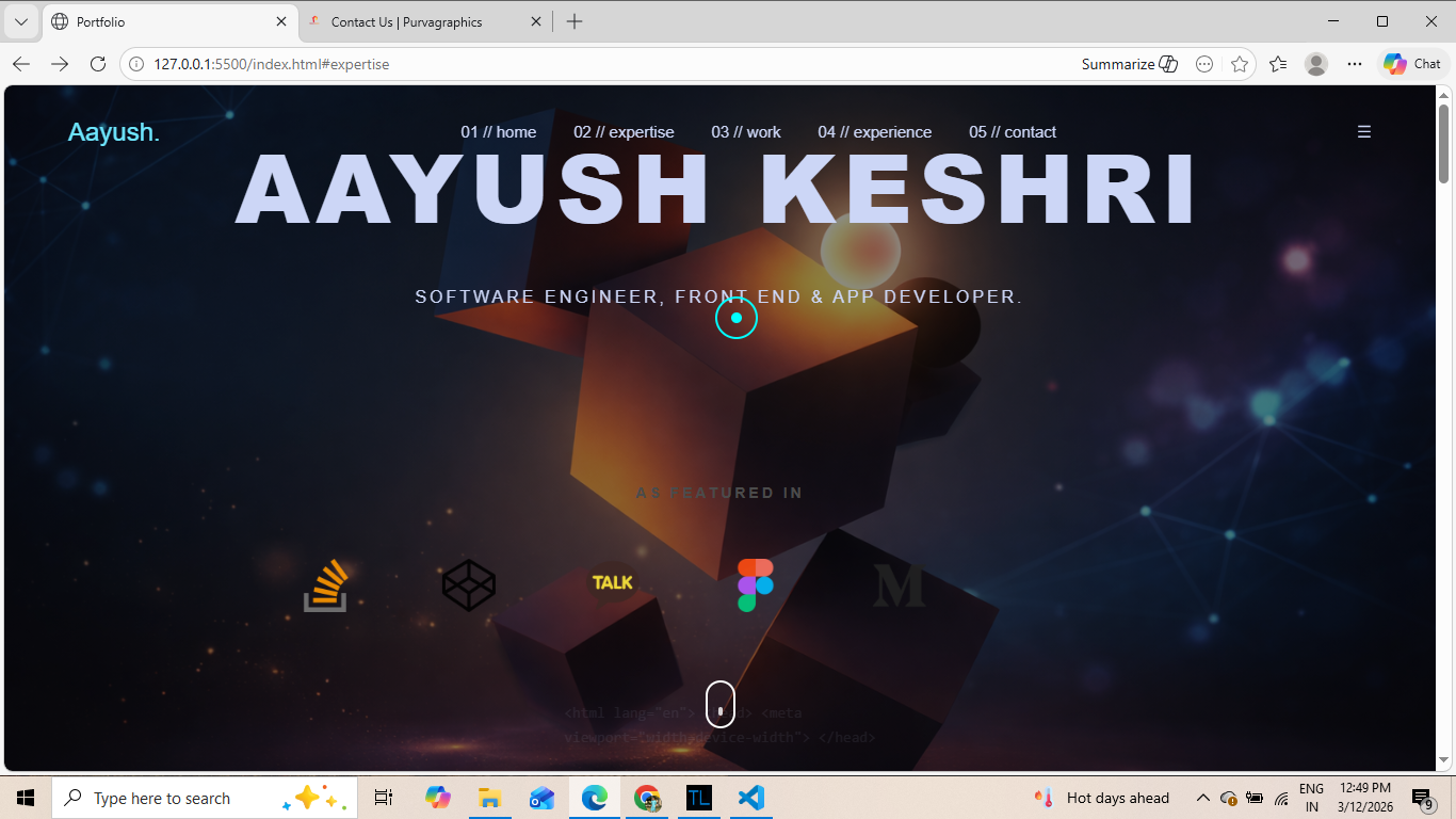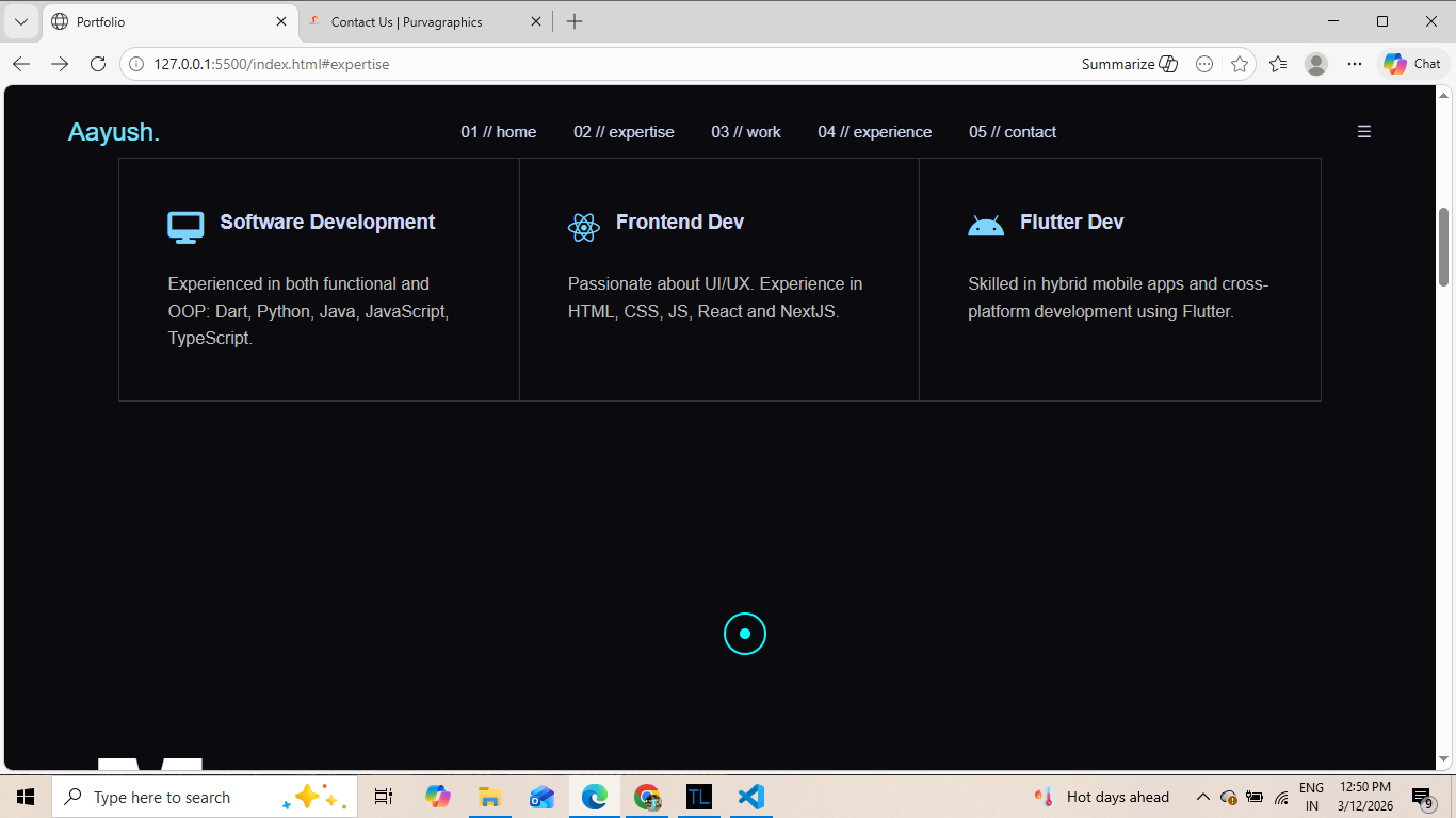 This project is a personal developer portfolio website created to showcase my projects, skills and contact information. The website includes project sections, animations and responsive design.
